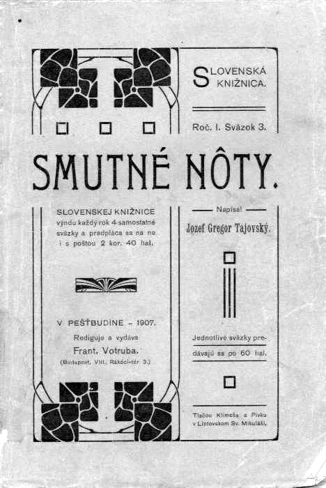 | Описание | Book jacket of Jozef Gregor-Tajovský's Smutne nôty (1907) |