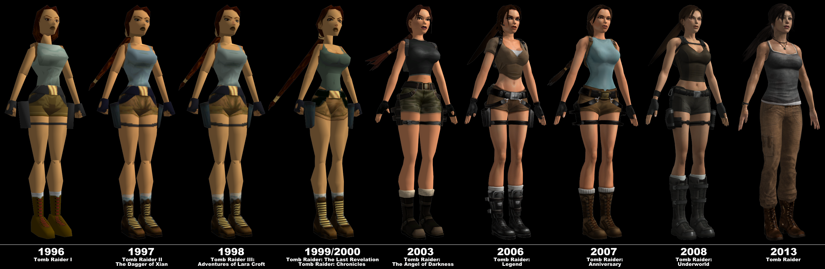 | Описание | Изменения моделий Лары Крофт 1996-2013 года |