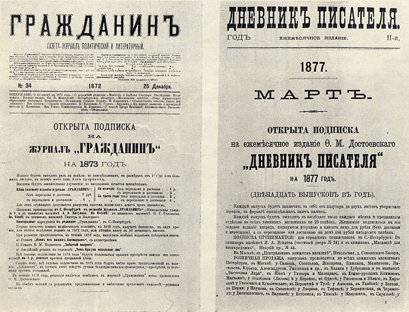 | Описание | Журнал "Гражданин", "Дневник писателя" Ф. М. Достоевского. Обложки изданий |