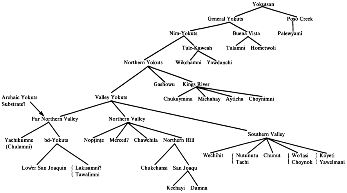 | Описание | Yokutsan family tree from Whistler & Golla (1986: 320-321).
