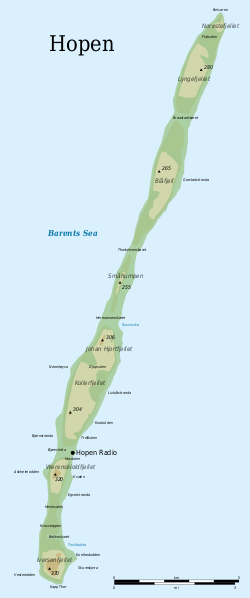 Остров Надежды[2] или Хопен (норв. Hopen) — остров в юго-восточной части архипелага Шпицберген, имеет вытянутую с юга на север форму, длиной 33 км и шириной лишь 2 км.