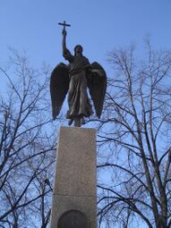 19 сентября 2000 года в честь 2000-летия христианства возле входа в храм была установлена бронзовая статуя Архангела Михаила высотой 2,5 метра и весом более 2 тонн. Отливка статуи была произведена на Уралмаше. 23 сентября монумент был освящён патриархом Алексием II[5][1].