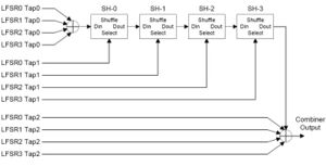 Модуль линейных регистров сдвига состоит из четырёх LFSR различной длины и разных смесителей (англ. combining function). Функция смешения зависит от трёх отводов (англ. tap) каждого регистра.