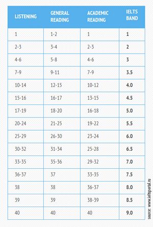 - ↑ Официальный сайт IELTS.org: Для организаций. Формат теста и результаты. Как оценивается IELTS Listening и Reading. Дата обращения: 22 июля 2013. Архивировано 27 мая 2013 года.
