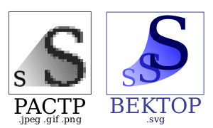- Масштабируемость — SVG является векторным форматом. Существует возможность увеличить любую часть изображения SVG без потери качества. Дополнительно, к элементам SVG-документа возможно применять фильтры — специальные модификаторы для создания эффектов, подобных применяемым при обработке растровых изображений (размытие, выдавливание, сложные системы трансформации и др.). В тексте SVG-кода фильтры описываются тегами, визуализацию которых обеспечивает средство просмотра, что не влияет на размер исходного файла, обеспечивая при этом необходимую иллюстративную выразительность.