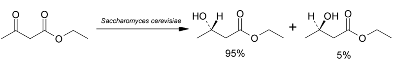 Различные дрожжи могут применяться в промышленности и в лаборатории для проведения стереоселективных биохимических синтезов. Так, если в жидкую питательную среду с пекарскими дрожжами добавить ацетоуксусный эфир, то после брожения из смеси можно выделить чистый (+)(S)-энантиомер эфира β-оксимасляной кислоты[12], который затем используют для синтеза других оптически активных соединений[13].