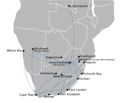 В январе 2010 года авиакомпания South African Express выполняла регулярные пассажирские рейсы по следующим пунктам назначения: