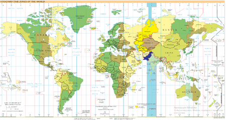 синим — пакистанское время зимой в зоне UTC+5 в ноябре-марте в Северном полушарии (летом — UTC+6) ;